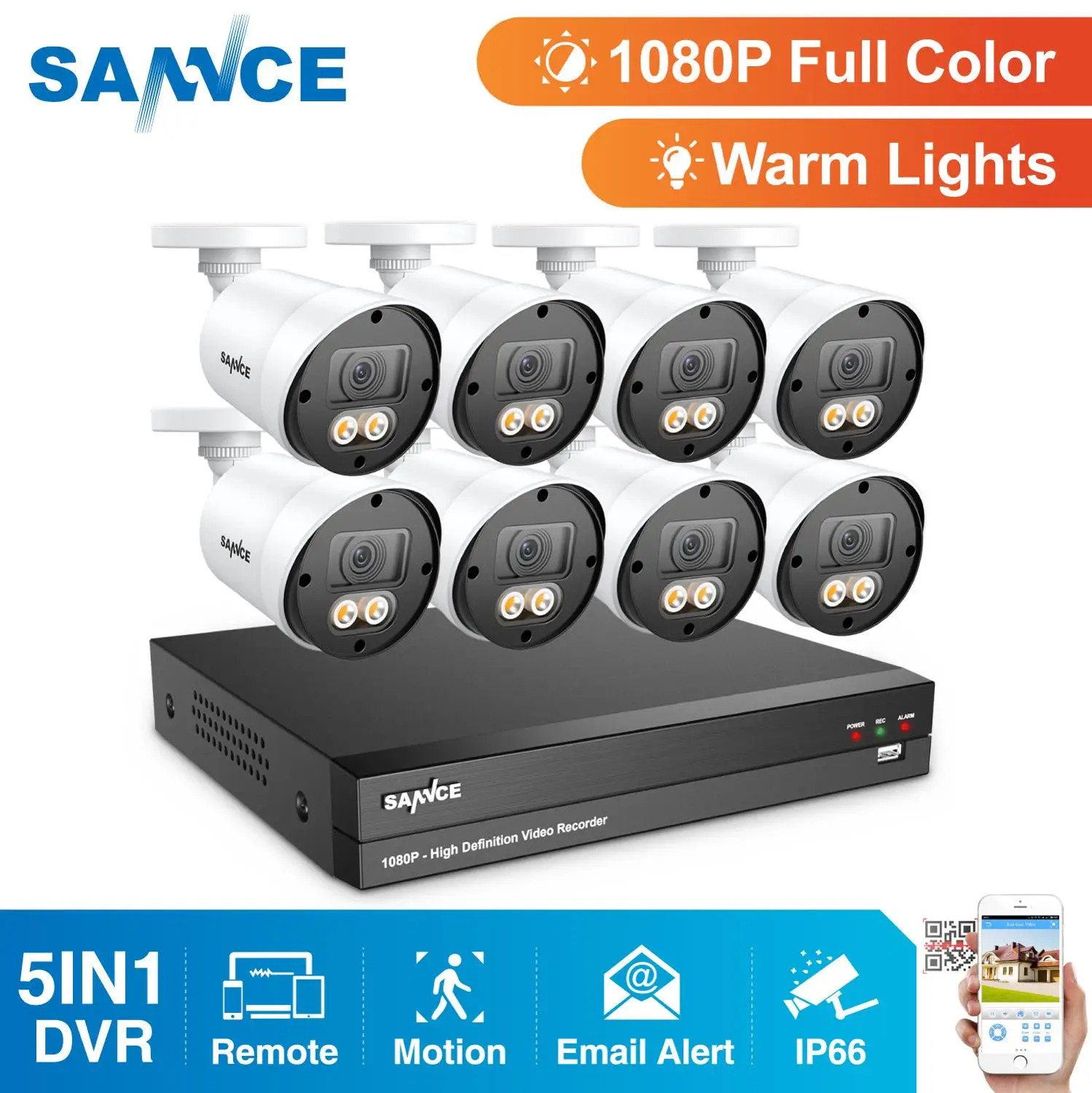 Discount SANNCE 8CH 1080P DVR 1080P CCTV System 8pcs 2.0MP Full Color Security Cameras IP66 Video Surveillan